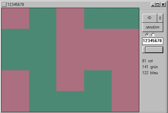 Die Darstellung kann schwarz/weiß und in zufällig wechselnden Farben erfolgen.